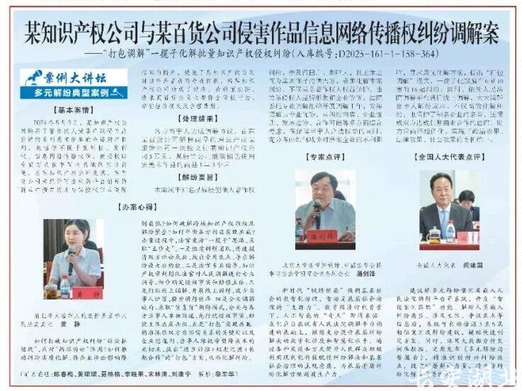 其中,“打包调解”16起跨域电商图片侵权案的做法尤为引人注目——从受理到结案仅用14天,原本可能对簿公堂的当事人,最终以版权合作握手言和,实现了从“侵权”到“合作”的共赢。该案作为湖北法院代表入选最高人民法院多元解纷案例库,并在最高人民法院案例大讲坛上作交流研讨。