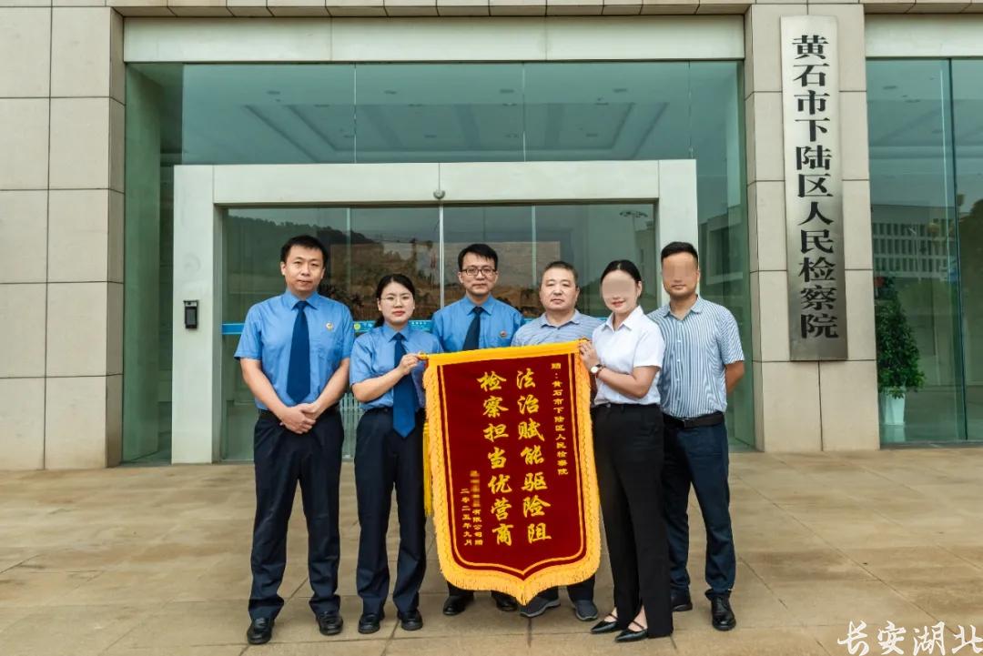近日,某民营企业销售业务主要负责人、社区矫正对象陈某某走进下陆区人民检察院,送上印有“法治赋能驱险阻,检察担当优营商”内容的锦旗,代表公司和个人感谢检察机关助力企业发展提供的优质司法服务。