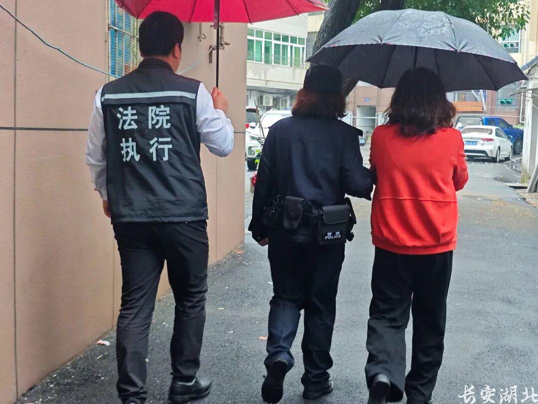 雨势稍歇,另一路执行干警驱车前往某居民小区楼下。沿着湿漉漉的楼梯,干警们叩开房门后,大冶某建筑工程公司法定代表人卫某仍然睡眼惺忪。