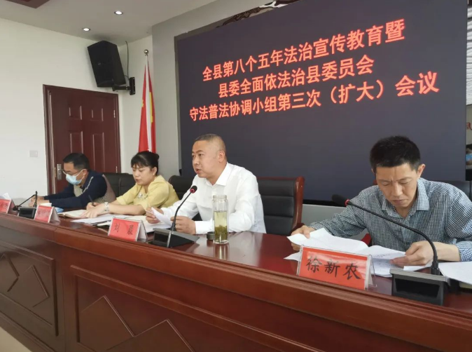 县司法局局长、县普法办主任徐新农对全县“八五”普法重点工作进行安排部署。