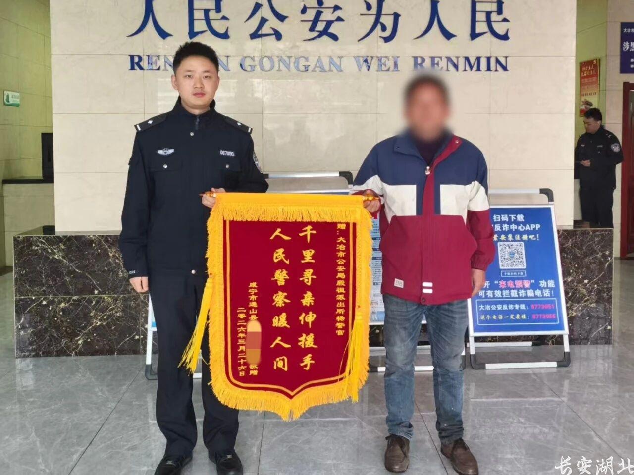 “千里寻亲伸援手 人民警察暖人间”的锦旗