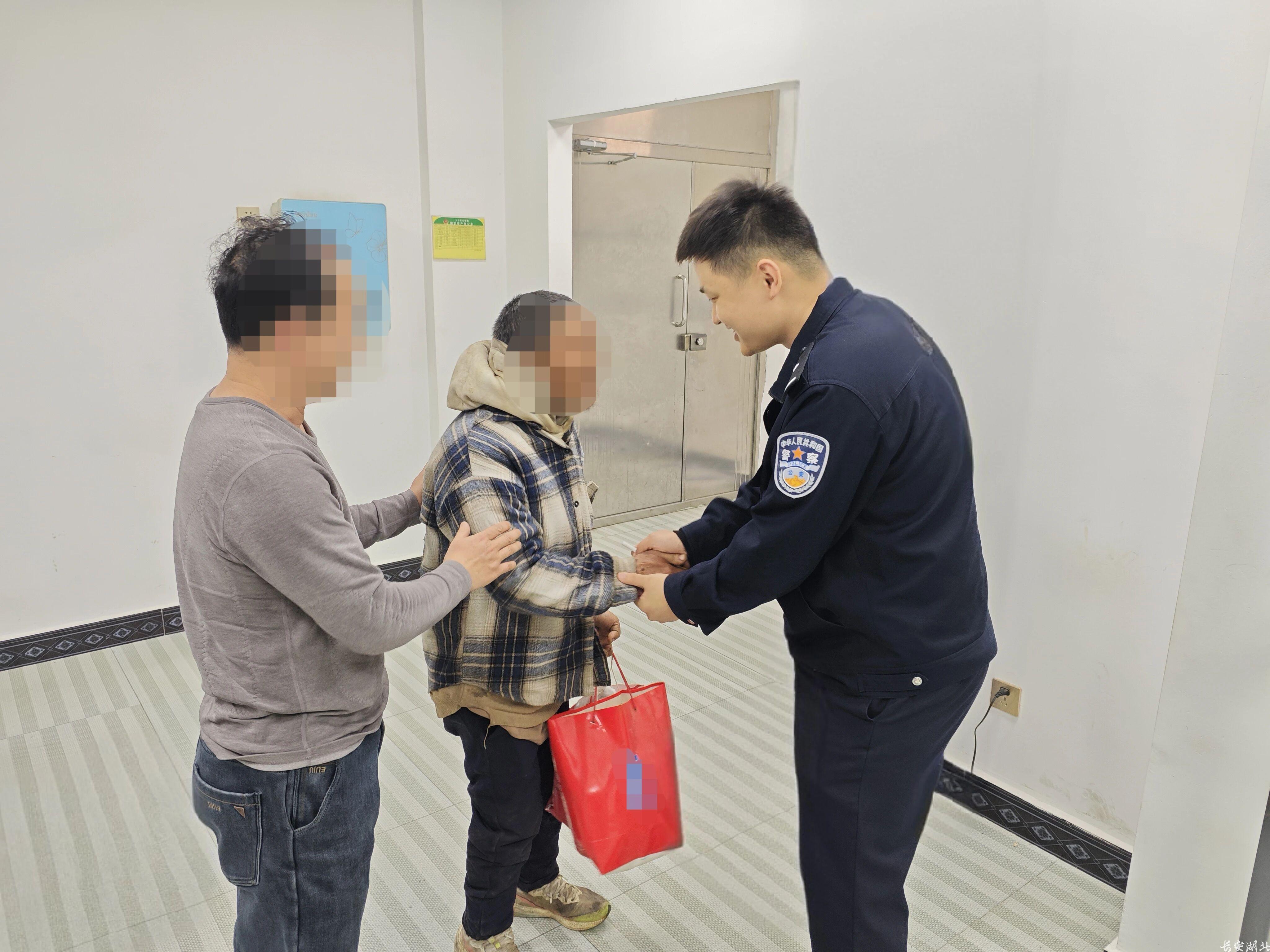 他紧紧握住民警的手连连道谢(来源:东楚晚报)