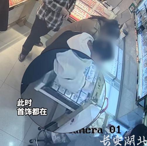 趁着店员拉开首饰柜的间隙